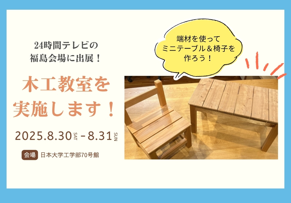 8/30(土)31(日)「24時間テレビ」の福島会場に昭栄創建が出展!端材でミニ机&椅子をつくろう!